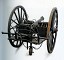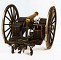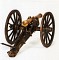 Foto 2: Modello ridotto di cannone in bronzo rigato da 9 cm da campagna tipo "Cacciatori". Modello 1844 con affusto sistema Cavalli. In base al confronto con l'esemplare reale, di cui alla precedente Foto 1, questo modello in scala 1:5 pare però differire in vari dettagli dal pezzo originale dichiarato in atti. E' verosimile che riproduca una versione di poco anteriore. Lunghezza cm 53,5. Museo d'Artiglieria di Torino, 09.01.0362. Foto Maria Vernetti.