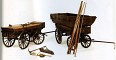 Foto 3: Modelli ridotti di equipaggi da ponte sistema Cavalli, con e senza barca. I modelli risalgono agli anni trenta del secolo XIX e sono entrambi in scala 1:10. Quello senza barca misura cm 139, incluso il timone, mentre quello con barca misura cm 151, sempre incluso il timone. Il Capitano d'Artiglieria G. Cavalli aveva ideato, oltre ad un sistema per il cannone da campagna di tipo "Cacciatori", anche un originale sistema di prefabbricazione, trasporto e installazione di ponti di barche, indispensabili per la conduzione di campagne militari nella pianura padana. Questo impiego fu favorito da Carlo Alberto, segno di un evidente orientamento antiaustriaco alquanto precoce da parte sua. Secondo questo sistema, la dotazione di ogni barca comprendeva, oltre alla barca, un'ancora con relativo gavitello, cinque pertiche da fiume, un lungo mezzo marinaio e molti altri accessori occorrenti ai genieri per l'allestimento di un ponte di barche. Museo d'Artiglieria di Torino, 09.02.0051 e 09.02.0149. Foto Maria Vernetti.